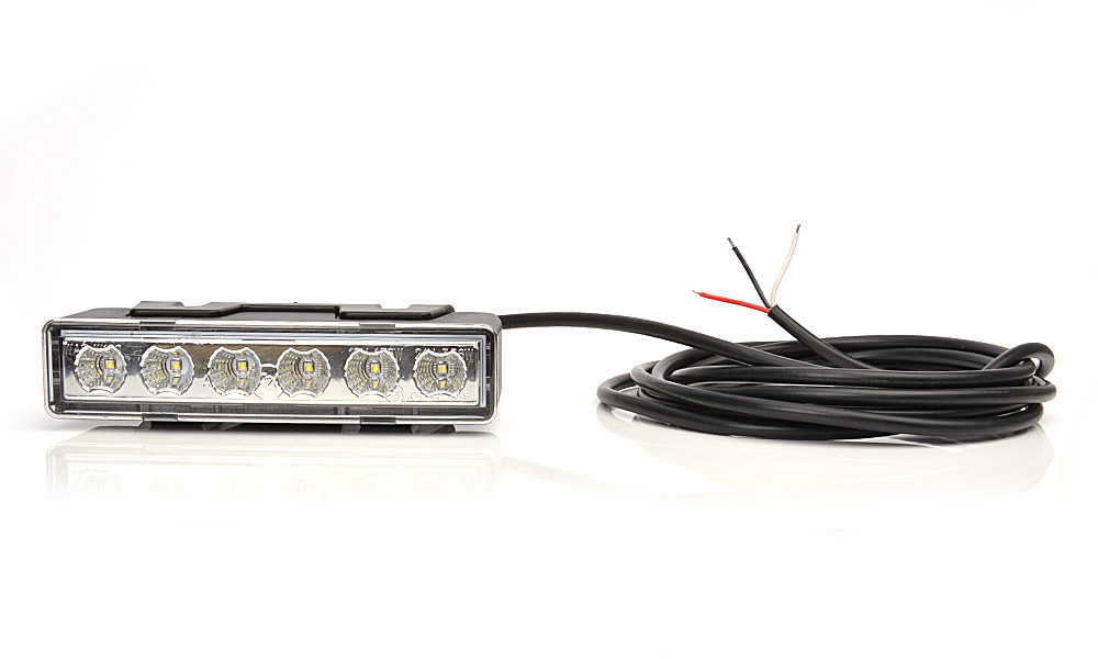 Gult LED blitzblink med klart glas og 6 LED´er i sort plast hus.